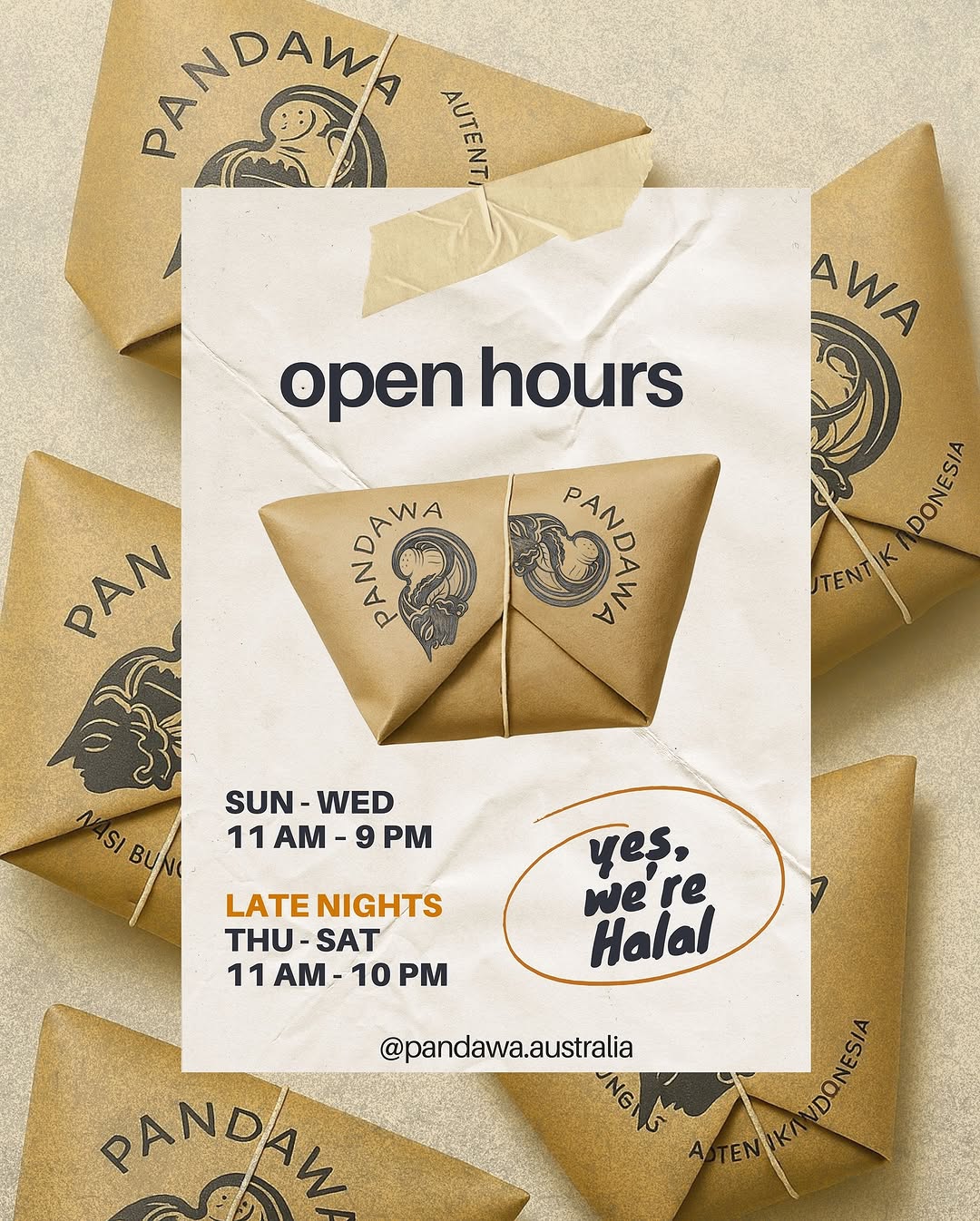 From Nasi Bungkus Pandawa to rich Bakso Pandawa, sizzling Iga Penyet Otentik, Nasi Goreng, Sate Ayam, Es Cendol, Burjo and everything in between — we’re ready to serve your authentic Indonesian flavours favourites, better than ever.